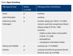 Mit diesem Beitrag soll daher ein Überblick über die gerichtlichen Anforderungen und Zulässigkeitsgrenzen an vertragliche Haftungsbegrenzungen sowie die Möglichkeiten einer rechtskonformen Vereinbarung gegeben werden. Dabei wird auch auf die Möglichkeit einer Schiedsvereinbarung (III.) oder der “Flucht” in eine ausländische Rechtsordnung (IV.) eingegangen. Schließlich lassen sich Haftungsrisiken auch durch vertragliche Gestaltung außerhalb der klassischen Haftungsbeschränkungsklauseln minimieren (V.).